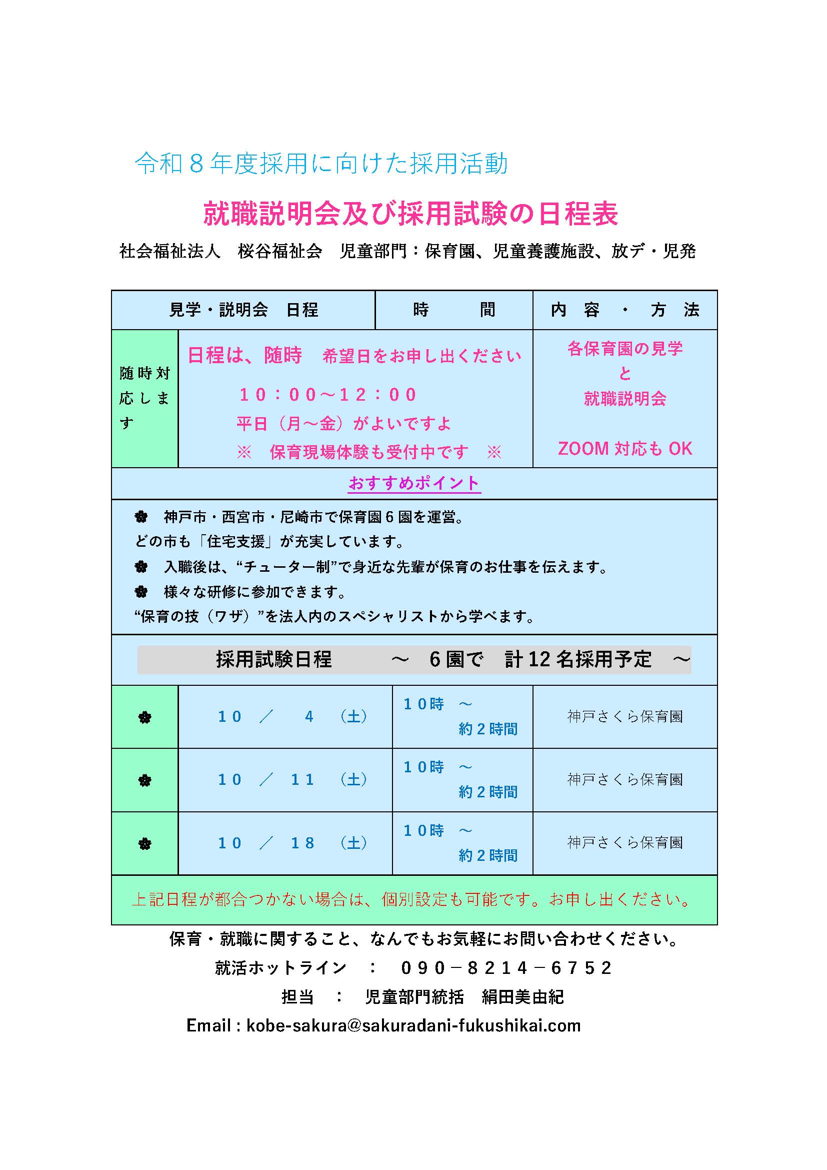 新着情報 保育部門 令和8年度 就職説明会及び採⽤試験の⽇程表 お知らせ 2025年9月28日 詳細はこちら 新着情報一覧へ戻る 最新情報カテゴリ お知らせ 先輩たちの声 新着情報 2025/09/28 保育部門 令和8年度 就職説明会及び採⽤試験の⽇程表 最新情報アーカイブ 2025年9月 (1)